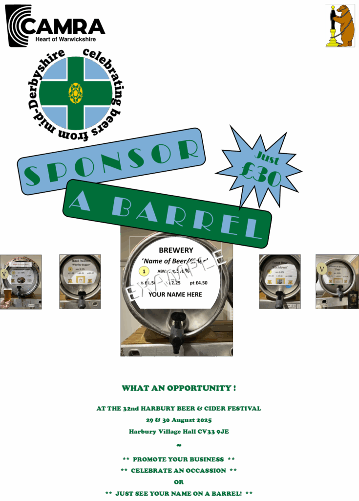 We offer the opportunity to sponsor a barrel at the festival for just £30. This is a great way to promote your business, celebrate an occasion or just see your name on a barrel. The sponsor names will also be in the festival programme, on the website and in the new app.